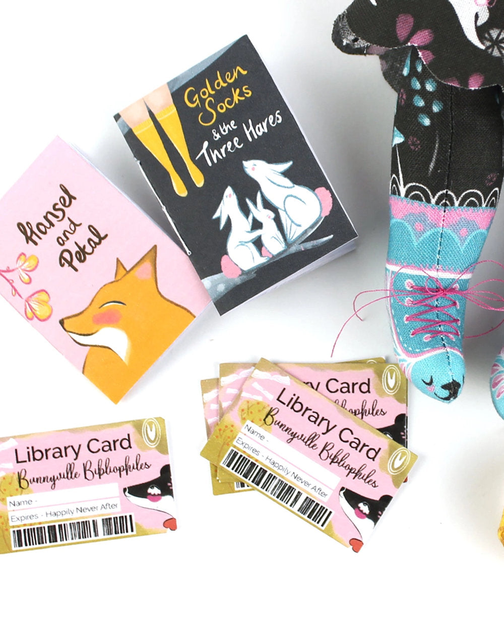 Meet Bibli, the librarian of Bunnyville Biscuit! This kit includes printed organic cotton fabric, full instructions, joint buttons, mini fairytale books, and library cards.