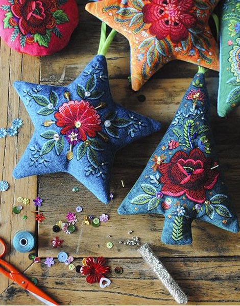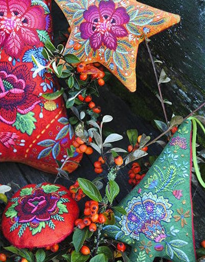 The matching decorations add a cosy, folkloric touch to your festive décor with embroidered-style motifs, and also make delightful keepsakes to gift to guests during the season. For an extra personal flourish, embellish your creations with sequins, embroidery stitches or a hint of metallic thread. Simply raid your own stash to make each piece truly unique!