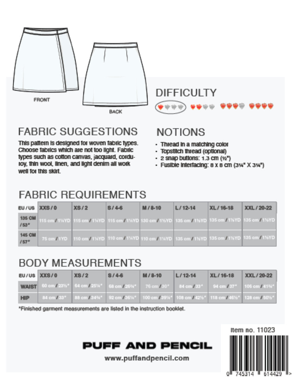 Fabric Suggestions: This pattern is designed for woven fabrics. Fabric like cotton canvas, jacquard, corduroy, thin wool qualities, linen, and light denim all work well for this skirt.