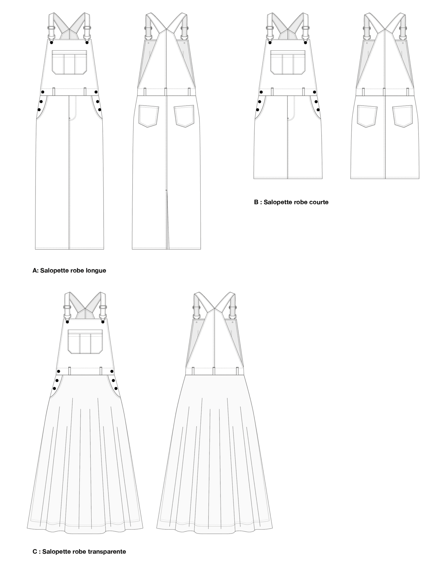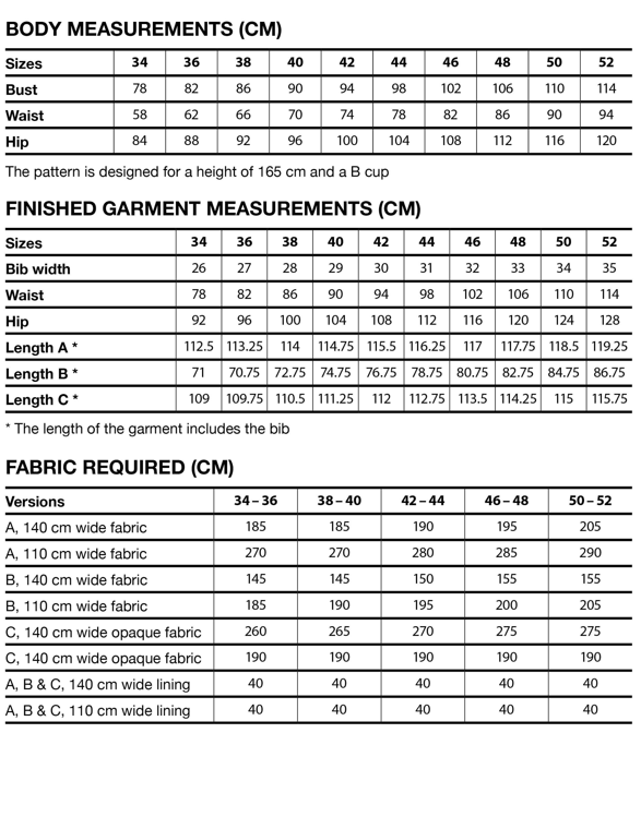 Crystal is a modern reimagining of the classic pinafore dress, designed to be sewn in three versatile styles. It retains all the signature details that make this timeless piece so appealing, a relaxed fit, front and back bib, adjustable straps, a large compartmentalised chest pocket, buttoned side openings, two front slash pockets, and contrast topstitching for a crisp finish.