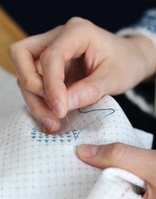 Daruma sashiko cloth is 100% cotton fabric witha grid of crosses that you use as stitch guides. Once you have finished your stitching just wash the cloth and the printed grid lines will disappear. Once finished the cloth can be used in the home, for furoshiki-style gift wrapping, or it can simply be hung on the wall as an artwork.