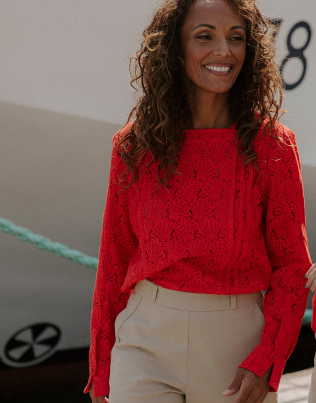 As delicate as the most worked blouse thanks to its small pleats, as original and essential as a sailor suit with its shoulder inserts, this pretty straight-cut blouse is set to become a wardrobe essential.