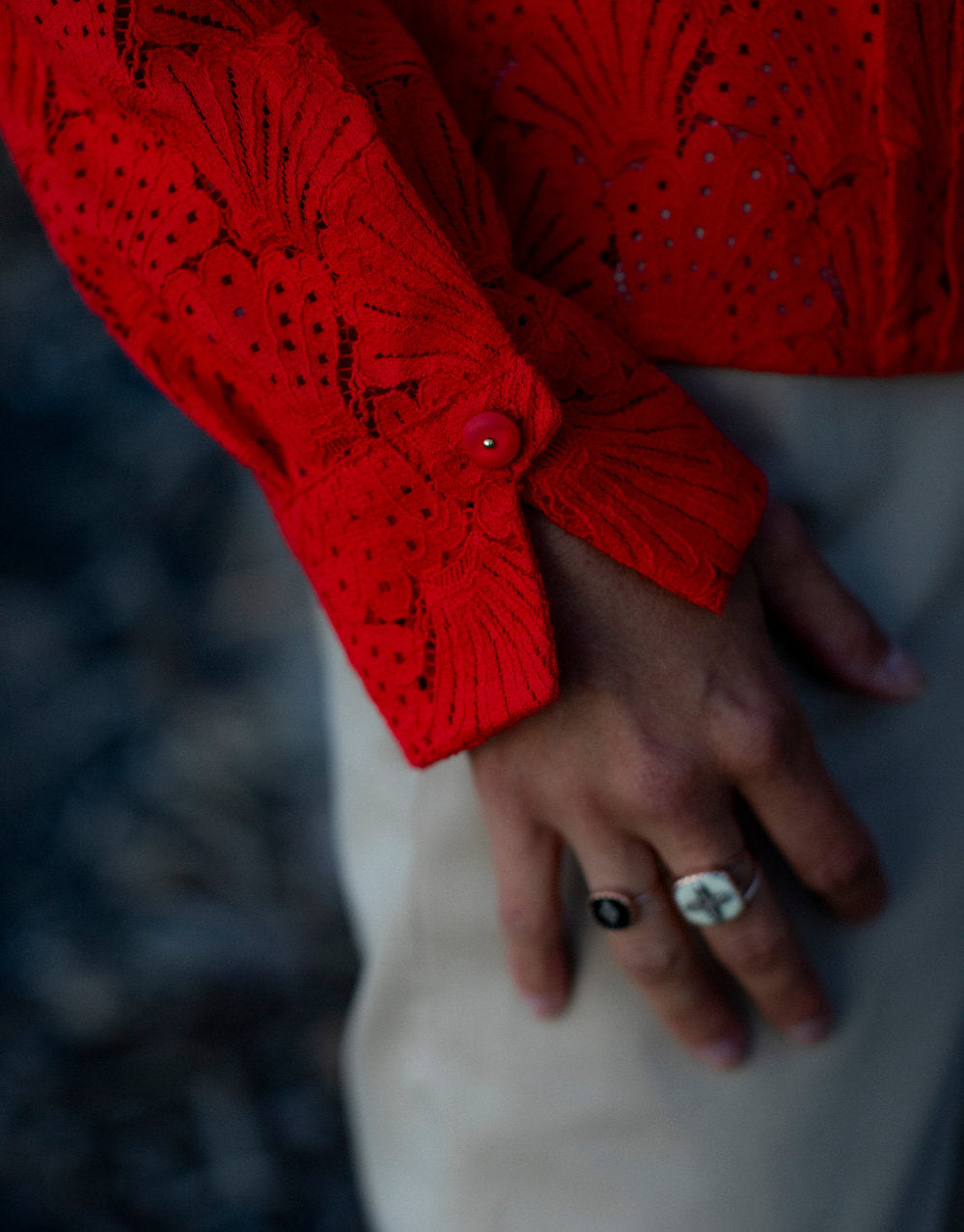 The Déferlante blouse can be worn in so many different ways: with or without buttoning at the front, with or without buttoning at the back, with pleats at the front, without pleats, or with just an embellished side. You'll never tire of reinventing your creations with this beautiful pattern. And the search for details that make all the difference doesn't stop there: the cuff is designed with an opening on the front of the hand, a delight that adds a further touch of elegance to Déferlante.