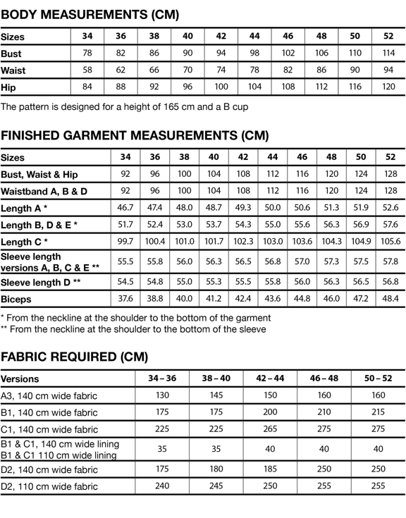 With a few simple adjustments, Gold can also be transformed into a work jacket featuring straight front patch pockets, a clean hem finish, and simplified sleeves. Each version can be sewn with or without sleeves or collar, giving complete freedom to customise your style.