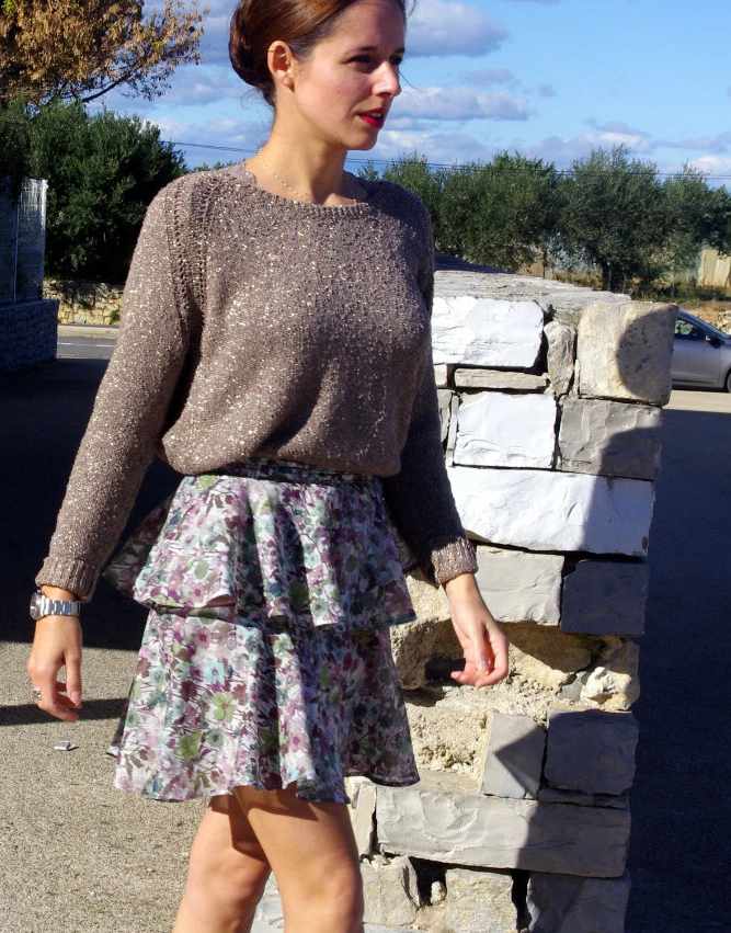A maxi skirt featuring three ruffles and a waistband over a pencil skirt closed at the back by an invisible zipper. The skirt ruffles are partially cut on the bias which gives this flowy dancing skirt a lovely drape avoiding the commonly feared puffy effect of ruffles on skirts.