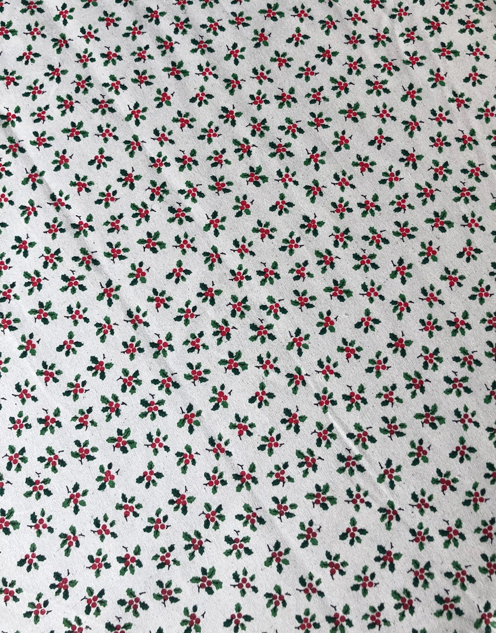 A festive classic, this cotton print is scattered with tiny sprigs of holly leaves and bright red berries on a soft natural background. Cheerful and timeless, it’s the perfect choice for all your Christmas makes, from table linens, stockings, and bunting to gift bags and festive craft projects.