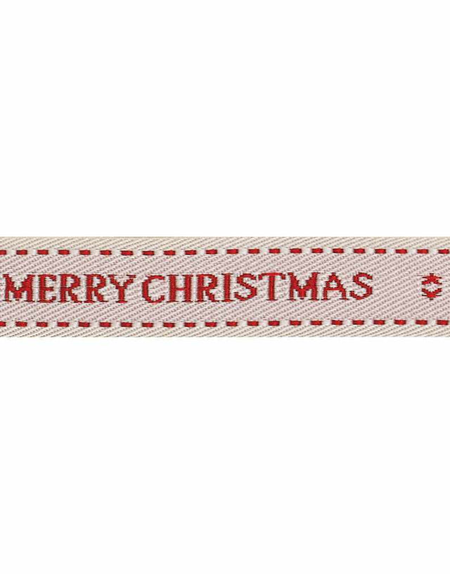 A classic ribbon for festive wrapping and crafts, this natural-coloured design is printed with bold red Merry Christmas text and finished with a stitched border for a traditional seasonal touch. It’s perfect for trimming gifts, decorating, or adding a handmade flourish to Christmas projects.