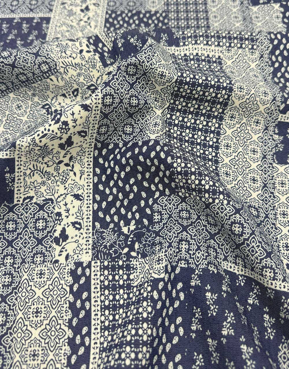 A beautiful Indigo Chambray Patchwork Cotton, this fabric combines the timeless appeal of chambray with the artistry of a printed patchwork design Read more