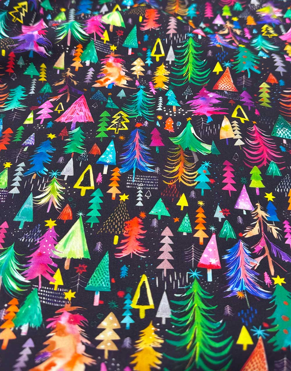 Bring a splash of festive cheer to your makes with this joyful Rainbow Christmas Tree Cotton Fabric. Printed with vibrant digital precision on pure, breathable cotton, it features a playful array of rainbow-hued Christmas trees - a modern twist on traditional seasonal prints. Soft, lightweight, and easy to sew, this fabric is perfect for creating handmade gifts, festive home décor, cheerful table settings, or colourful Christmas quilts.