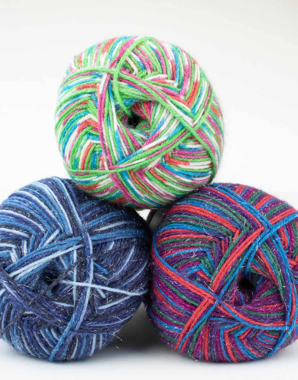 Add a little shine to your festive makes with our Signature Sparkle 4ply Christmas yarn, available in the magical colourways of Silent Night, Fairy Lights and Vintage Tinsel. With all the warmth, softness and luxury of a 75% wool blend, which includes Bluefaced Leicester, there is also added nylon for durability. This delightful yarn also comes with a little sparkle that will evoke nostalgic Christmas memories and add shimmer to your needles and hooks in colourways perfect for decorations and stockings, as well as socks and shawls to put under the tree.