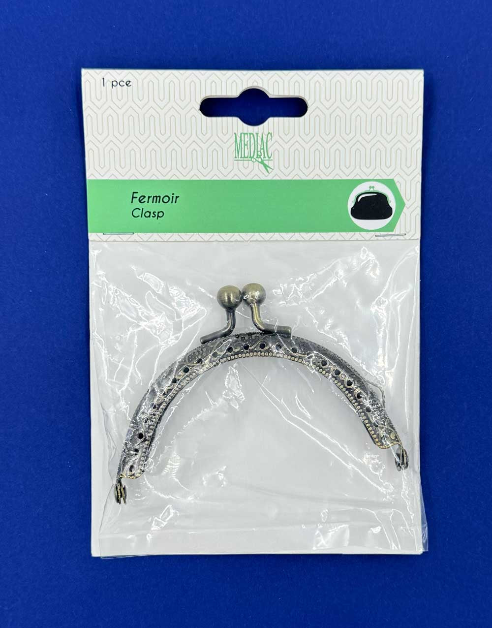 A stylish clasp fastening, ideal for making small bags, glasses cases, clutches or evening purses. With a decorative antique brass finish and a secure snap closure, it adds a refined touch to your handmade bags.