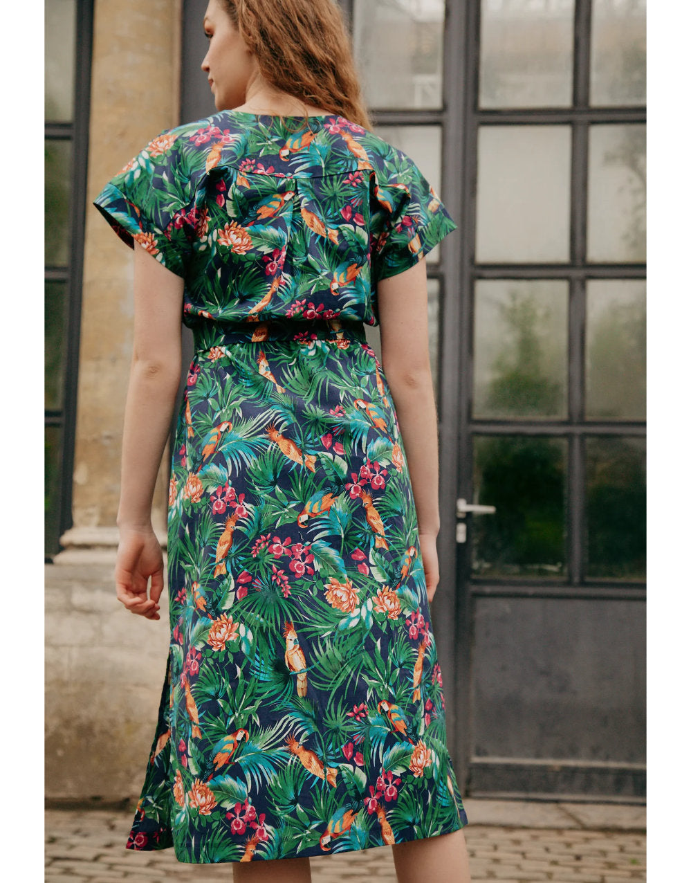 Solange is a beautiful summer dress with a soft, effortless feel. She features a flattering V-neckline, gentle gathers at the shoulder seams, and elegant sleeve cuffs. The midi-length skirt is finished with side slits for a breezy, easy-to-wear silhouette.